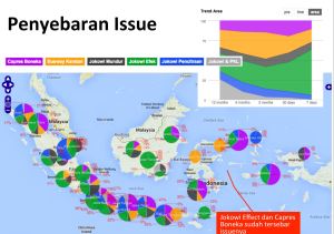 Kami menyebut pola pergerakan ini cukup sistematis mengingat persebaran isunya demikian massif hanya dalam hitungan hari. Setidaknya ada dua grup media besar (dengan total penguasaan market share lebih dari 50%) yang memompa isu ini secara agresif selain penggunaan influencer yang kuat dengan timing yang pas. Bisa diperhatikan dalam grafik di bawah, hanya dalam tempo hari ekskalasi isu menyebar di seluruh penjuru Indonesia.